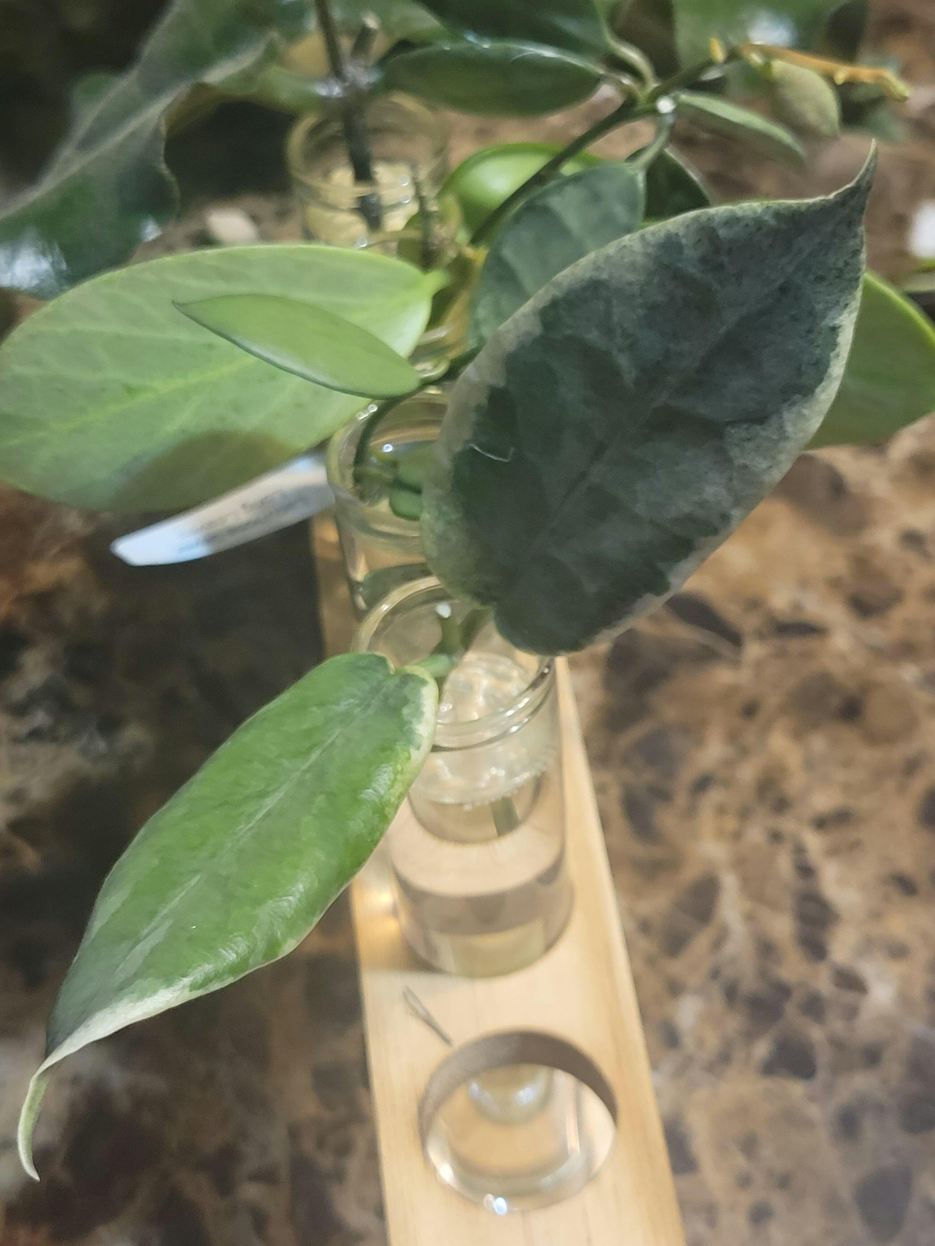 Unrooted cutting of Hoya archiboldiana (outer variegated).